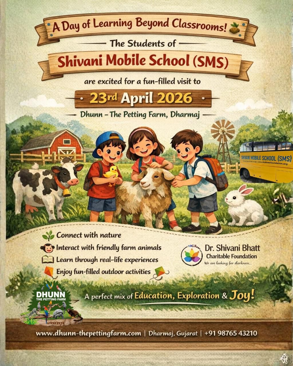 As we are approaching the closing days of school & beginning of vacation, SBCF has planned to take the kids of Shivani Mobile School (SMS) to visit The Petting Farm @ Dharmaj on 23rd April.
